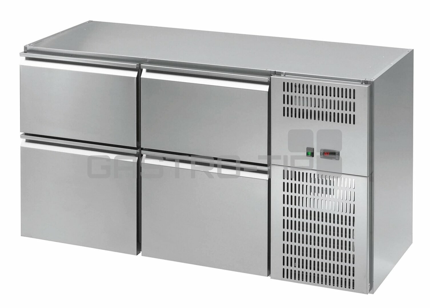 Dvousekcový barový chladící stůl. Model v celonerezovém provedení (AISI 304). Digitální ovládání, ventilované chlazení, aut.odtávání (připojení na odpad). Stoly ve standardu dodávány bez vrchní pracovní desky (viz.příslušenství). Umístění agregátu.....