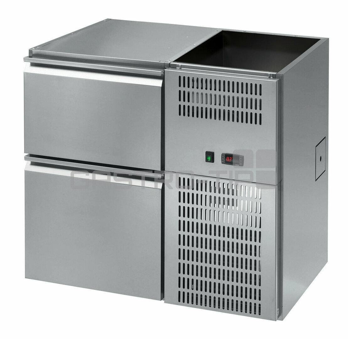 Chladicí stoly výčepní FEGD / FEGS110E, 102E, 220E, 212E a 204E jsou určeny pro vestavění pod pult výčepu. V základu bez pracovní desky! Stoly jsou vyrobeny v celonerezovém provedení (AISI 304) s vestavěným agregátem, který je dle verze umístěn vpravo (D) nebo vlevo (S). Digitální ovládání s displejem pro snadné nastavení teploty v chladícím prostoru. Ventilované chlazení, automatické odtávání s odpařováním kondenzátu. Vybaveny hlubokými zásuvkami pro nápoje, nebo s dvířky (prostor pro Keg sud). Příplatkově lze doplnit prostor o vnitřní úložnou policí na nápoje a zámky dveří nebo zásuvek.