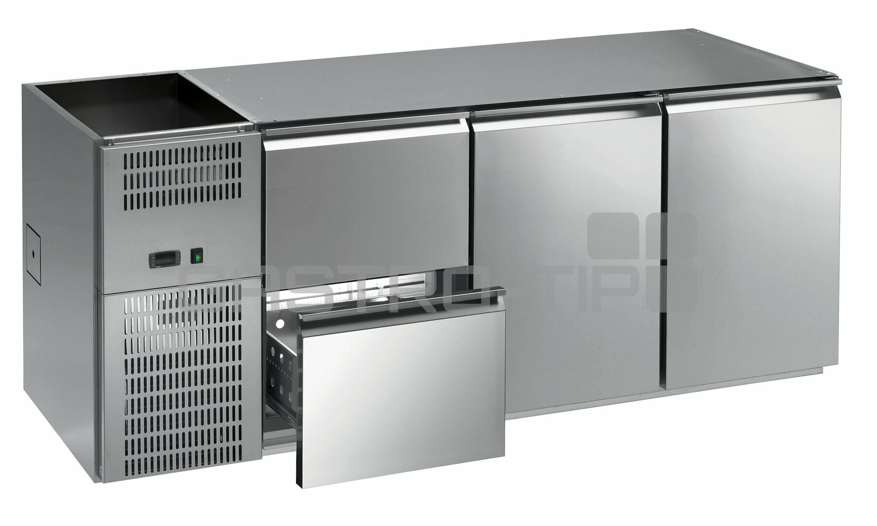 Chladicí stoly výčepní FEGD / FEGS330E, 322E, 314E a 306E jsou určeny pro vestavění pod pult výčepu. V základu bez pracovní desky! Stoly jsou vyrobeny v celonerezovém provedení (AISI 304) s vestavěným agregátem, který je dle verze umístěn vpravo (D) nebo vlevo (S). Digitální ovládání s displejem pro snadné nastavení teploty v chladícím prostoru. Ventilované chlazení, automatické odtávání s odpařováním kondenzátu. Vybaveny hlubokými zásuvkami pro nápoje, nebo s dvířky (prostor pro Keg sud). Příplatkově lze doplnit prostor o vnitřní úložnou policí na nápoje a zámky dveří nebo zásuvek.