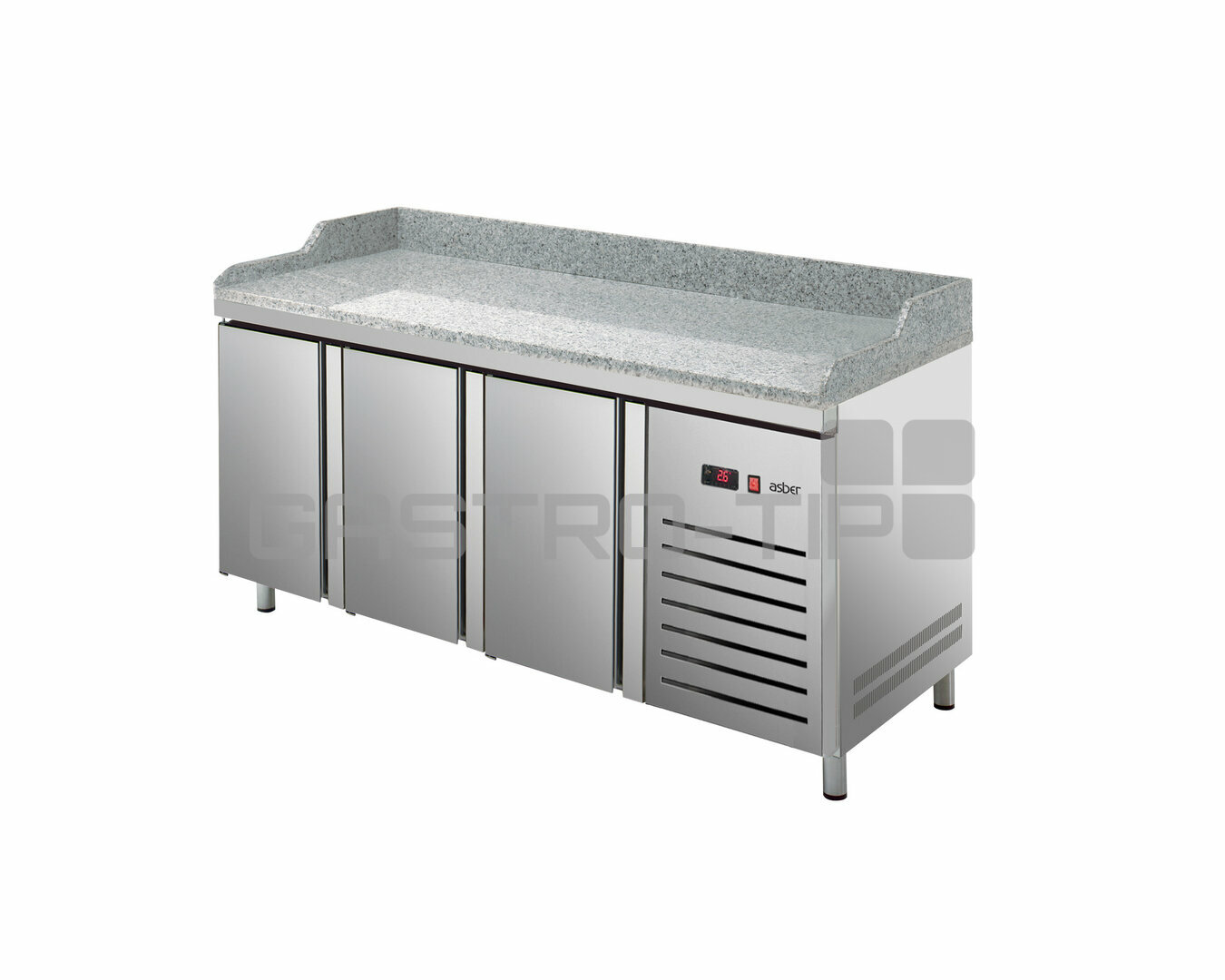 Speciálně vyrobené z vysoce kvalitní nerezové oceli pro intenzivní profesionální aplikace, vyznačující se velmi robustním designem a perfektní dokončovací práce. Ideální pro použití jako stanice na přípravu pizzy v kombinaci s pouzdry na přísady na pizzu. Robustní 30 mm žulová pracovní deska s bočním a zadním zadním krytem o výšce 120 mm, zabraňující rozlití za pultem.....