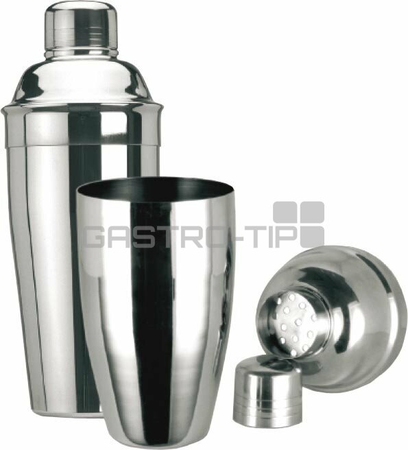 Nerezový trojdílný shaker s víčkem je dodáván ve třech velikostech 350, 500 a 750ml.
