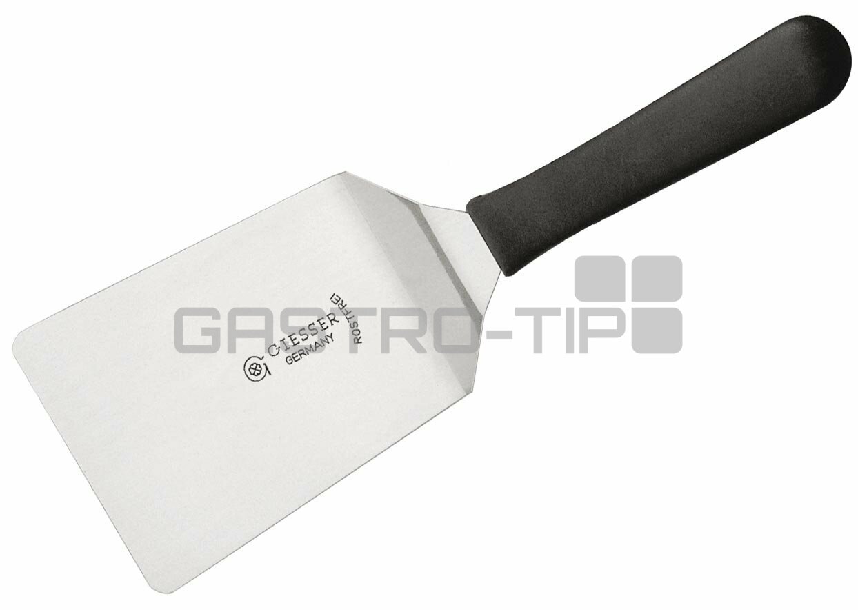 Nerezová obracečka Giesser Messer s plastovou rukojetí. Délka obracečky je 20cm a šířka plochy 9cm.