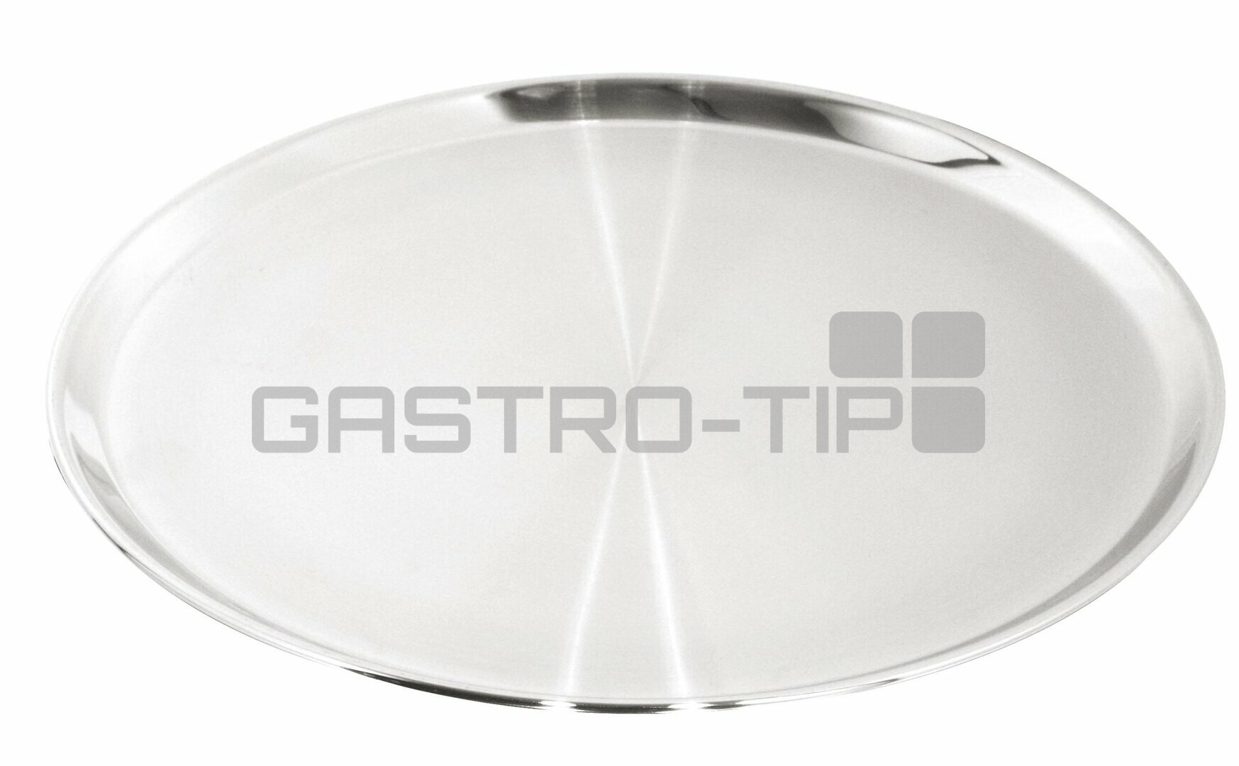 Kulatý nerezový tác s vyvýšeným okrajem 10 mm a průměrem Ø400 mm.