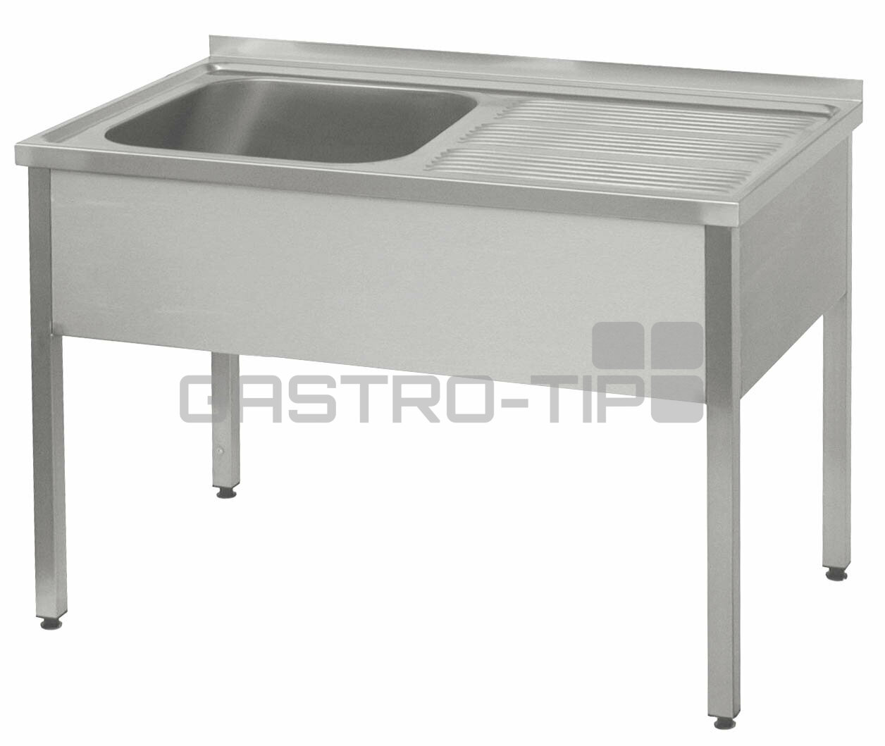 celonerezové provedení s vevařeným lisovaným dřezem odkapovou plochou a opláštěním čela a boků zadní lem vysoký 40 mm síla materiálu 1 mm standardní výška 850 mm (nebo dle dohody) stavitelné jeklové nohy (40 x 40) jsou umístěny 15 mm od hran stolu a v rovině se zadní stranou základní provedení bez trnoží součástí dřezu není sifon * Další možná provedení dvoudřezu s prolisovanou odkládací plochou, až do délky 2200 mm. (délka stoupá po 100mm)