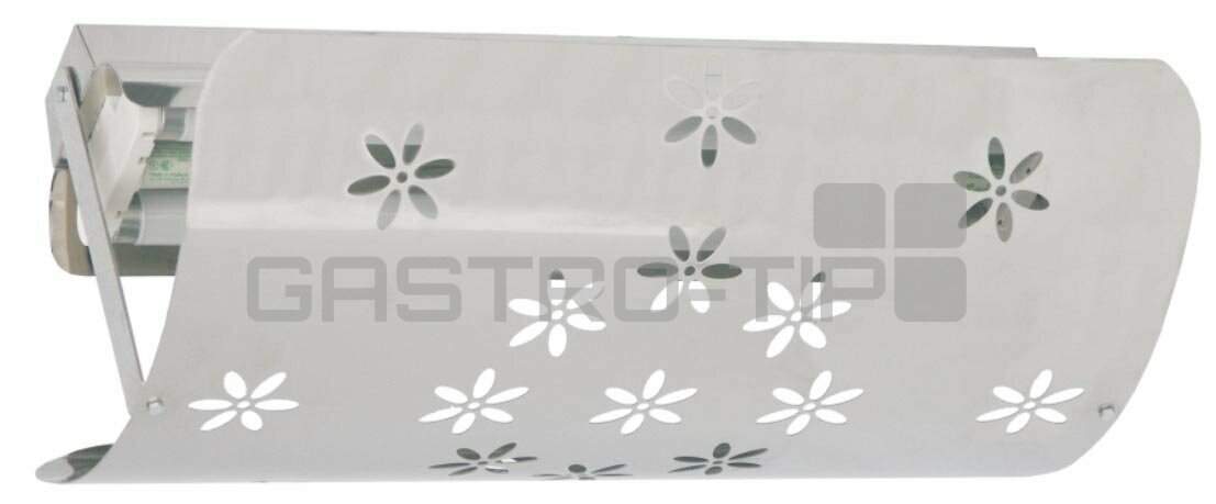 Provedení: pro zavěšení na stěnu i do prostoru (uvedený model splňuje nejpřísnější HACCP předpisy- samolepící fólie trvale zachytí 100% omráčeného hmyzu). Zářivka 2 x 15W, nerezové provedení.