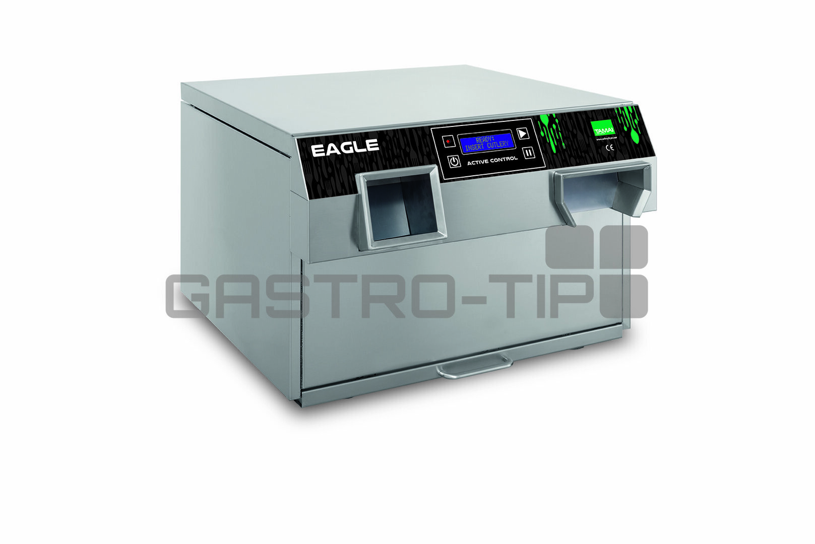 Automatická leštička příborů TAMAI EAGLE EVO v kompaktním celonerezovém provedení (AISI 304). Model EAGLE je absolutní novinkou v oblasti leštiček příborů. Leštička je určena pro střední i náročnější gastronomické provozy s kapacitou až do 250 míst a výkonem leštění 5 až 6000 ks příborů za hodinu. Zařízení je tepelně a zvukově izolováno (opláštění pohlcující zvuk), tím přináší výraznou úsporu energie a zejména snížení hladiny hluku v provozovně. Je vybaveno novou elektronickou deskou EVO, která obsluhu snadno naviguje při ovládání stroje.