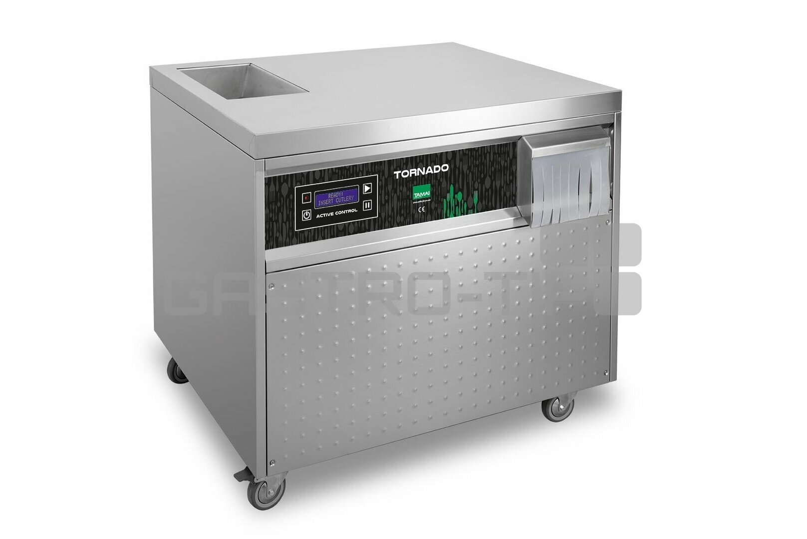 Automatická leštička příborů TORNADO EVO je nejvýkonnější model z nabídky firmy TAMAI v pojízdném celonerezovém provedení (AISI 304) určen pro velké gastronomické provozy s kapacitou nad 250 míst a výkonem více jak 10 000 příborů za hodinu. Zařízení je tepelně a zvukově izolováno (opláštění pohlcující zvuk), tím přináší výraznou úsporu energie a zejména snížení hladiny hluku v provozovně. Je vybaveno novou elektronickou deskou EVO, která obsluhu snadno naviguje při ovládání stroje. Snadná obsluha : příbory se umístí do plnícího otvoru v horní části zařízení, následně se samovolně posunou skluzavkou do nerezového vibračního tunelu s leštící náplní (sušená kukuřičná drť), vybaveným výkonným ventilovaným ohřevem (sušení a sterilizace) a vibračním motorem (leštění a posun příborů). Každý kus je perfektně vyleštěný: vysoká teplota udržuje kukuřičné granule stále suché, neporušené a připravené k leštění dalších a dalších kusů příborů. Příbory jsou automaticky vibračním leštícím procesem dopraveny do výstupního otvoru v pravé části čelního panelu, odkud samovolně vypadávají do přiložené přepravky uložená na podstavci, nebo vozíku (příplatková výbava).