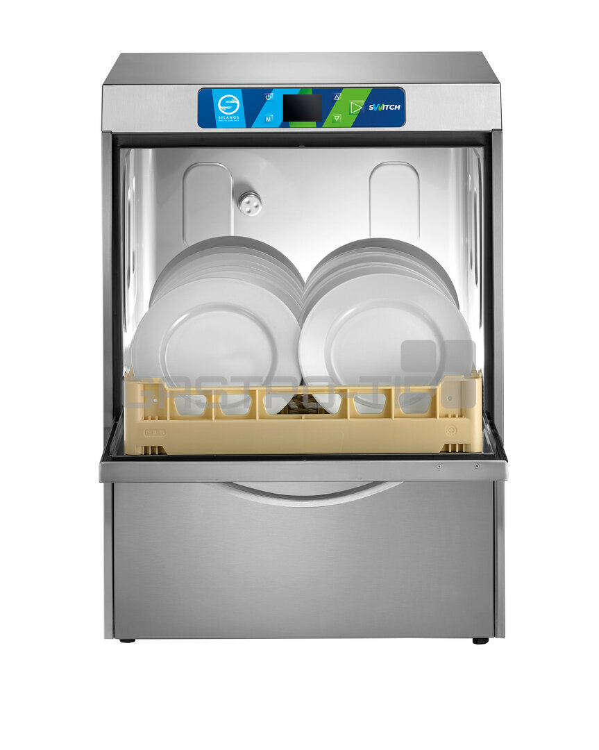Koš 500x500, oba dávkovače DB, 400V, odpadové čerpadlo, změkčovač, výkonný systém oplachu HY-NRG s přídavným čerpadlem. Nové inovativní myčky Silanos, řady SWITCH 50-37N-2ASK vybaveny revolučním úsporným systémem oplachu SWITCH, který zvyšuje mechanické účinky oplachu a snižuje spotřebu vody až o 50%, spotřebu detergentu, elektrické energie a CO2. Horní a dolní oplachová ramena se spouštějí střídavě a veškerý proud vody prochází.....
