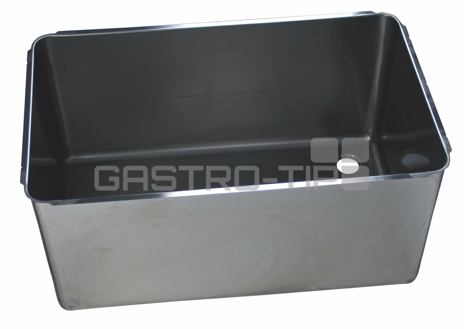 Dřez s oblými rohy a mírným sklonem dna k prolisovanému odpadnímu otvoru 70/54mm pro umístění výpusti (1 1/2").