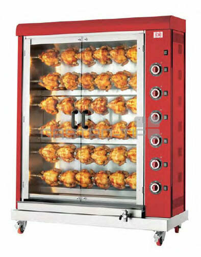 Elektrický gril na kuřata E-36PB-S6 - červený lak: Dokonalý pomocník pro restaurace a gastronomické provozy.